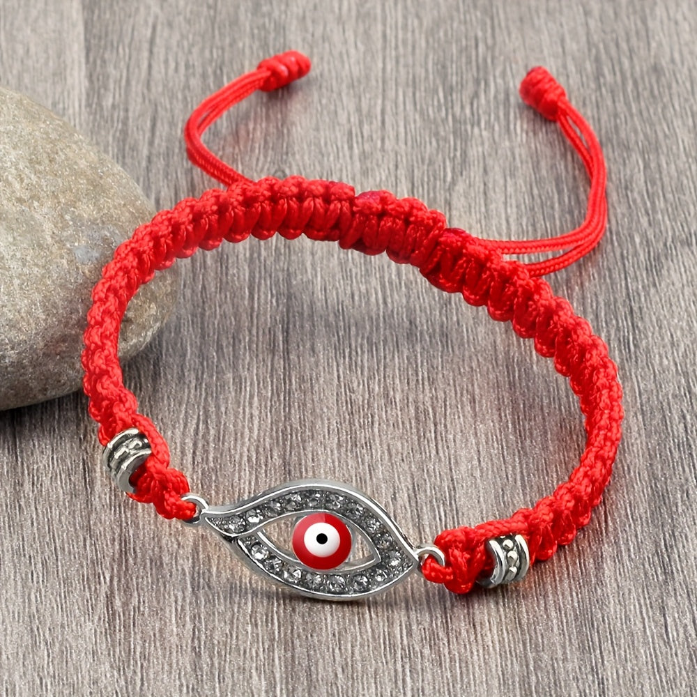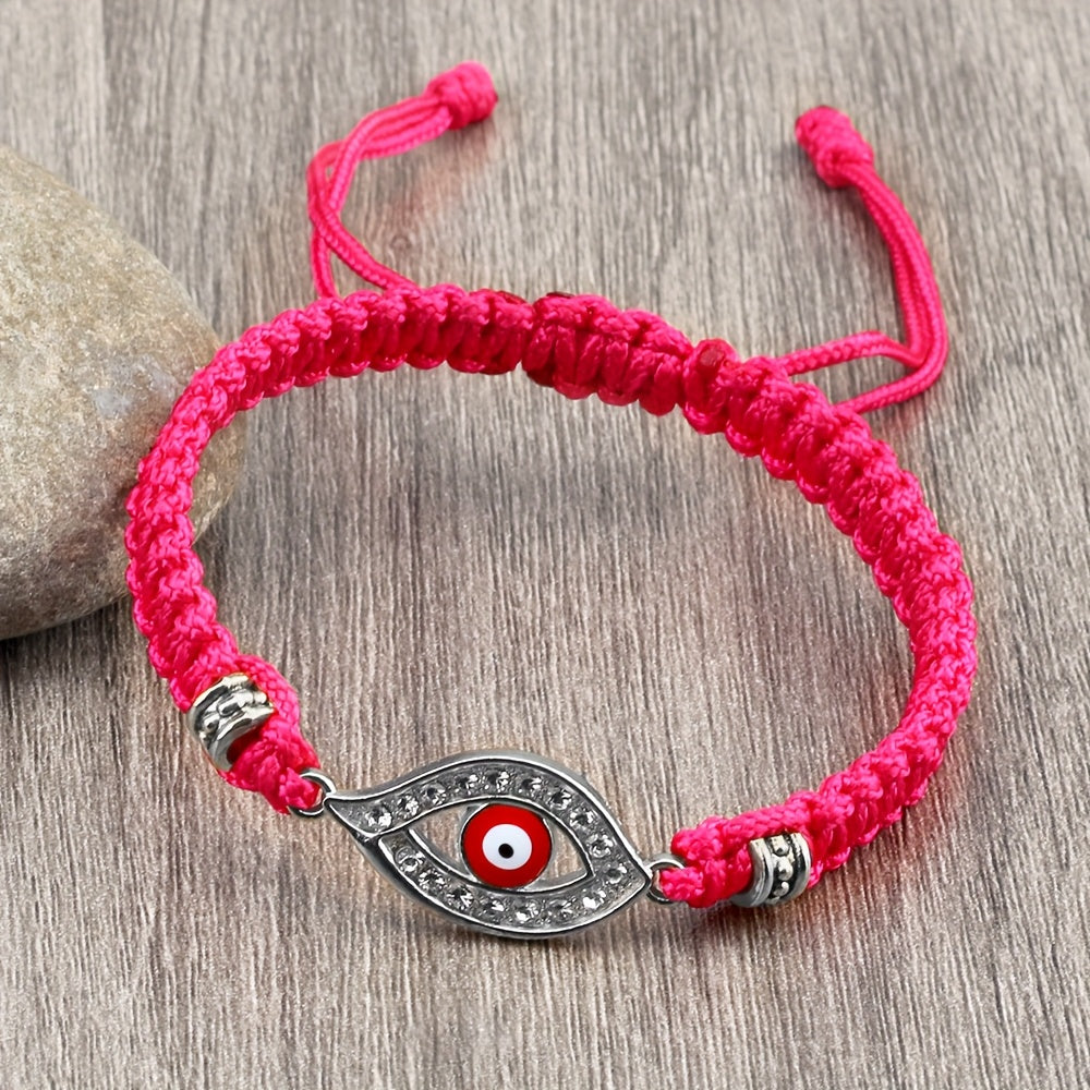 Adjustable Woven Evil Eye Bracelet – Multi-Color Nylon Thread with Alloy Charm, Protective Lucky Jewelry