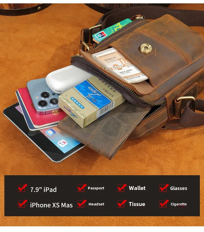 Genuine Leather Men’s Shoulder Bag – Handmade Everyday Crossbody Style
