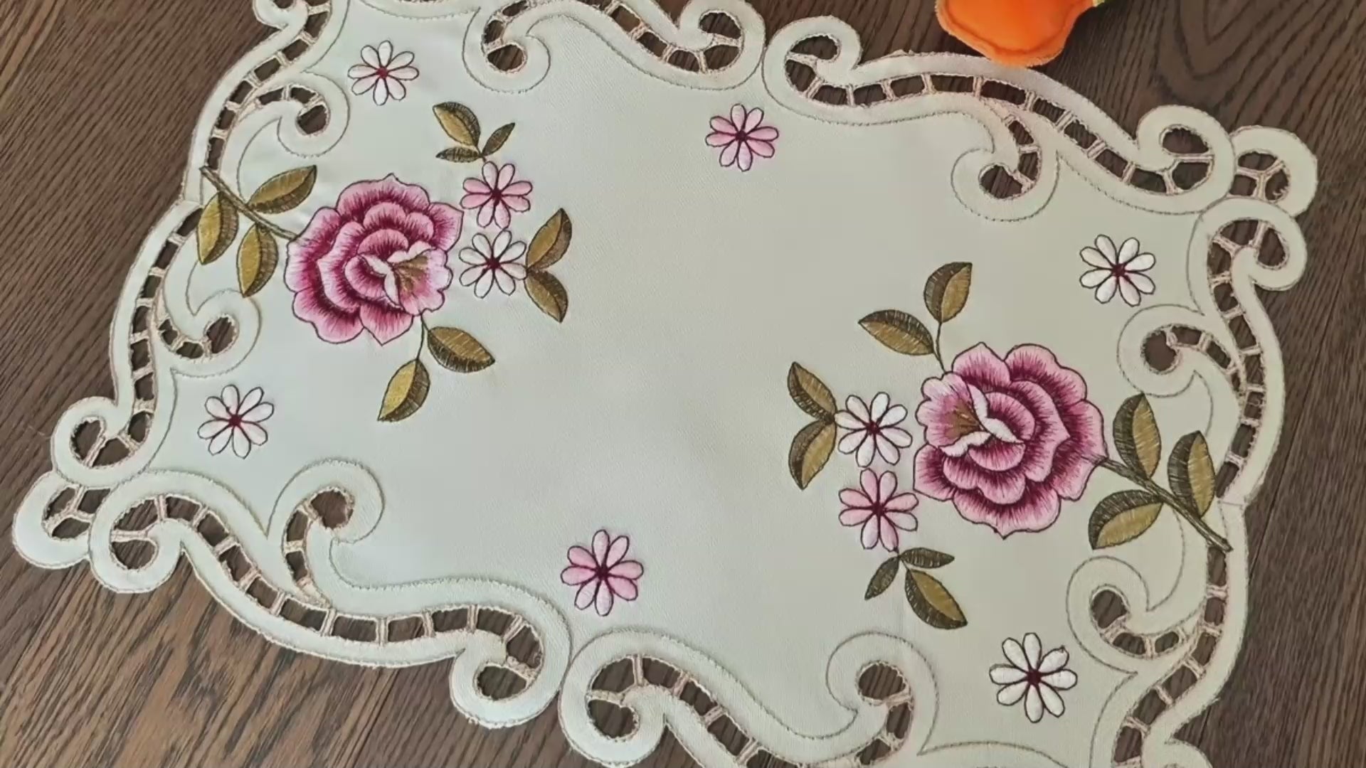 Handmade Floral Embroidered Tablecloth – Elegant White Cotton with Lace Trim
